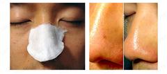 取出適量塗濕棉片,然後蓋到黑頭粉刺位置,敷4-5分鐘後, 再用棉花棒輕壓, 便見到黑頭粉刺浮出。 每星期用一至三次。